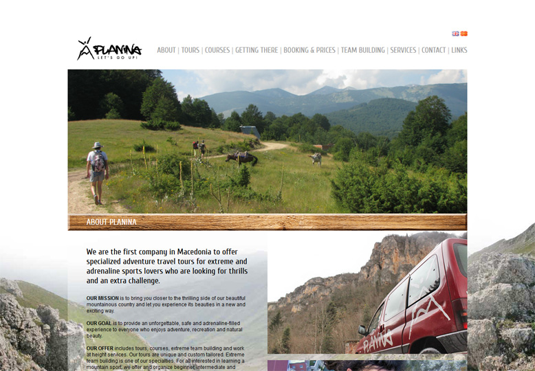 Planina is the first company in Macedonia to offer specialized adventure travel tours for extreme and adrenaline sports lovers. “Planina” means “mountain” in Macedonian, and the symbol I came up with was a minimalistic stick figure drawing, in an exhilarating pose over the mountain ridge.